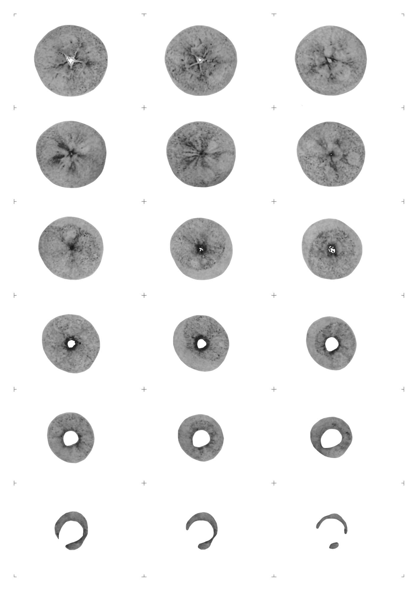 Before introducing my topic, I would like to document my most recent design, the apple poster—although the term ‘design’ might be inaccurate given its lack of functional consideration. It shows the interior of an apple, aligned in a modular grid and printed through a risograph machine. Although originally intended as a flipbook, I found it more effective to present the different slices collectively, rather than directly translating the narrative into a time-based viewing experience.