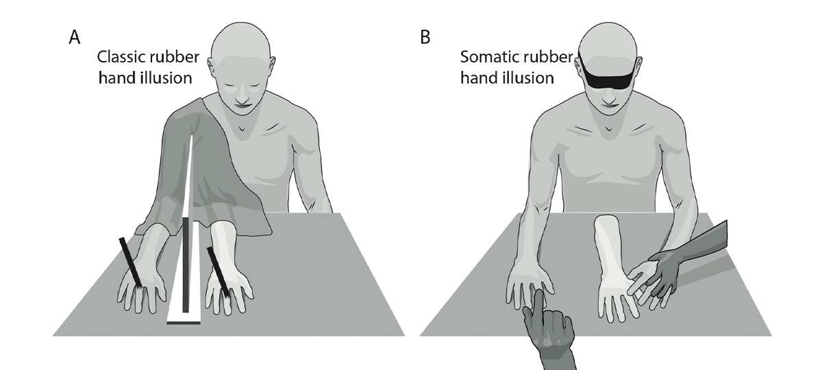The first is the infamous Rubber Hand Illusion. In a 1998 study by researchers Botvinick and Cohen, people were shown a fake rubber hand while their own hand was hidden.