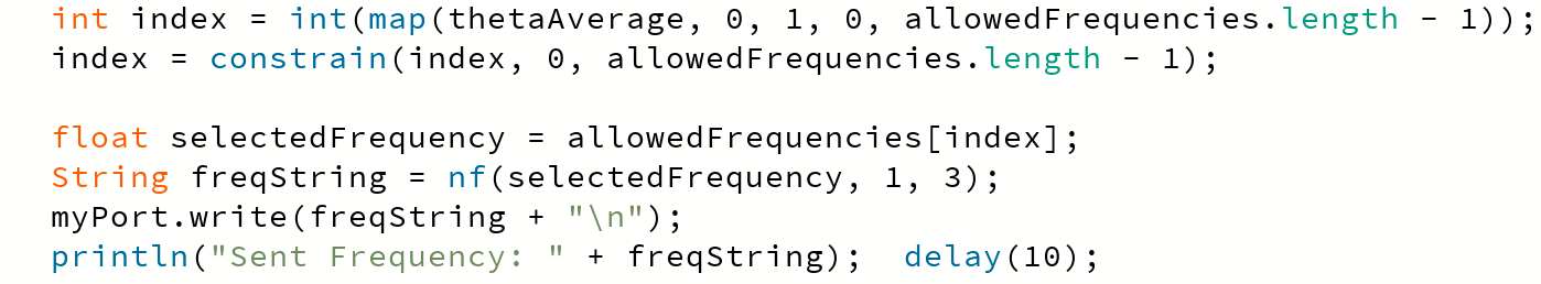 Another challenge was the disruptive noise caused by frequent data updates during radio frequency changes. To address this, I implemented a two-second delay in processing EEG data. This adjustment smoothed the interaction, creating seamless auditory transitions without compromising responsiveness to brainwave activity.