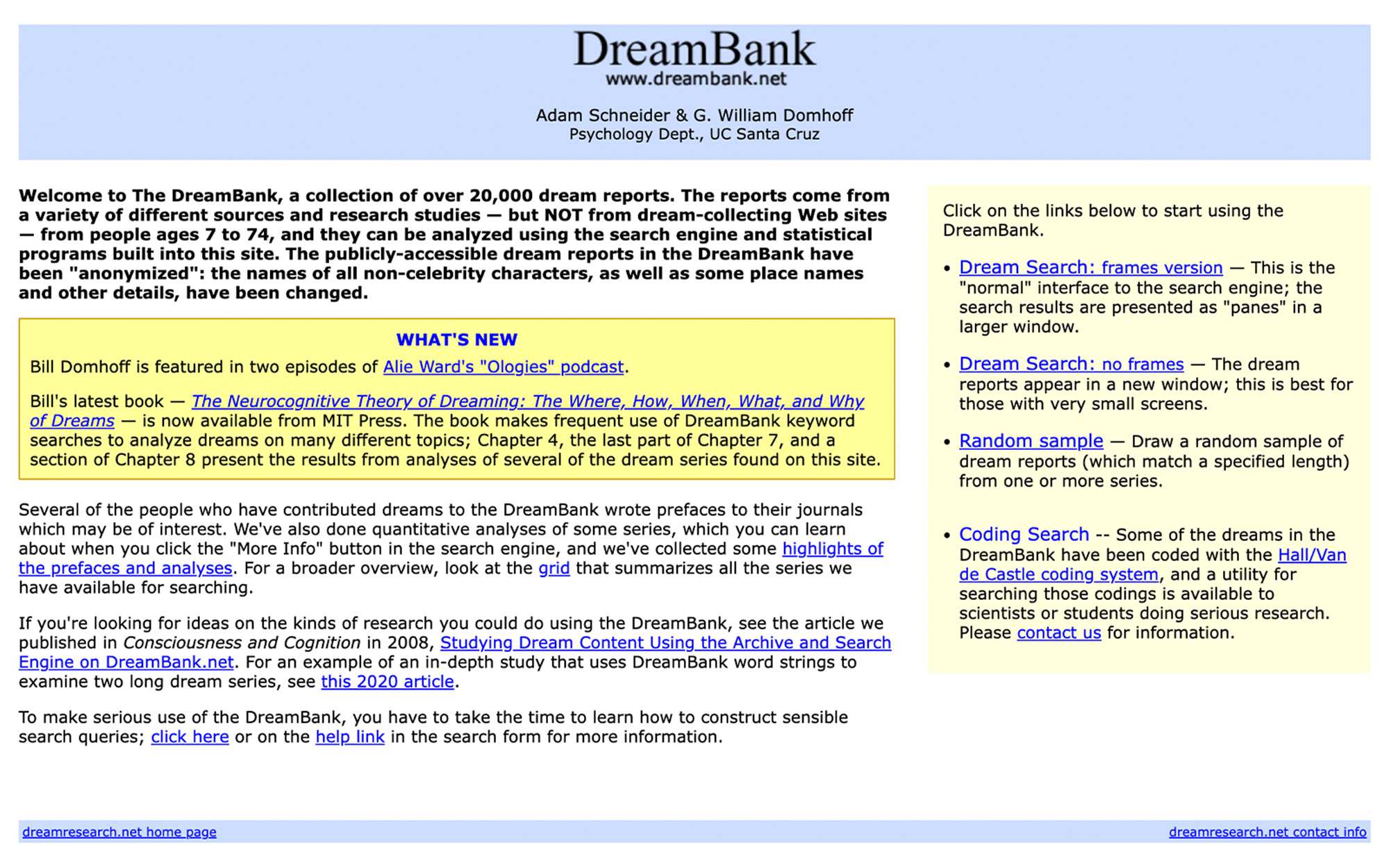 One possible option was the DreamBank, an online archive of dream reports gathered from various sources over the decades. It organises thousands of dreams by demographics, themes, and contexts, making it a suitable resource for studying patterns in dreams across different populations.