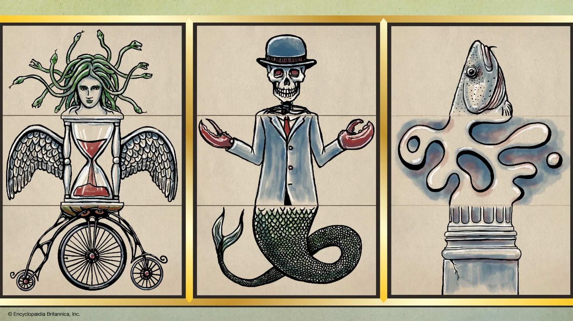 Then there’s the Exquisite Corpse, a group exercise where each artist adds to a drawing or text without seeing the whole, letting randomness and collaboration steer the outcome. It results in a piece that’s unpredictable, something that a single mind could not construct.