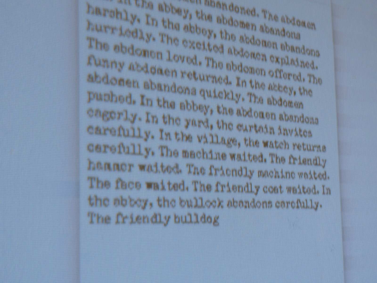 Each sentence is appended to the ongoing text to create a continuous narrative or "novel." The program automatically advances to the next word in the sentence at a different speeds. First, once 3 seconds, then by the typing speed of the type animation.