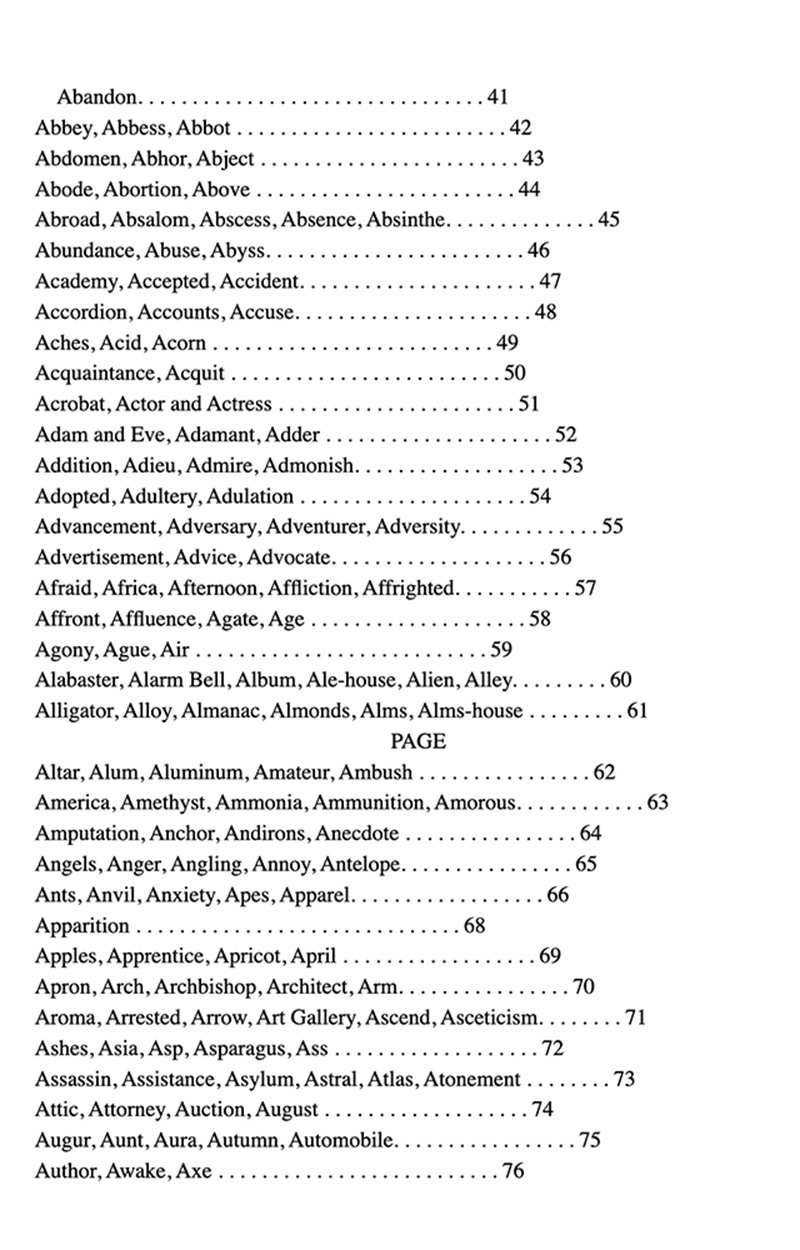 Although this could be a fun and extremely comprehensive option, it felt overwhelming to use as a part of an exercise. To use this, I would need a very well structured and justifiable method just to extract the words. So, I moved on to looking for a more concise index of words related to dreams.