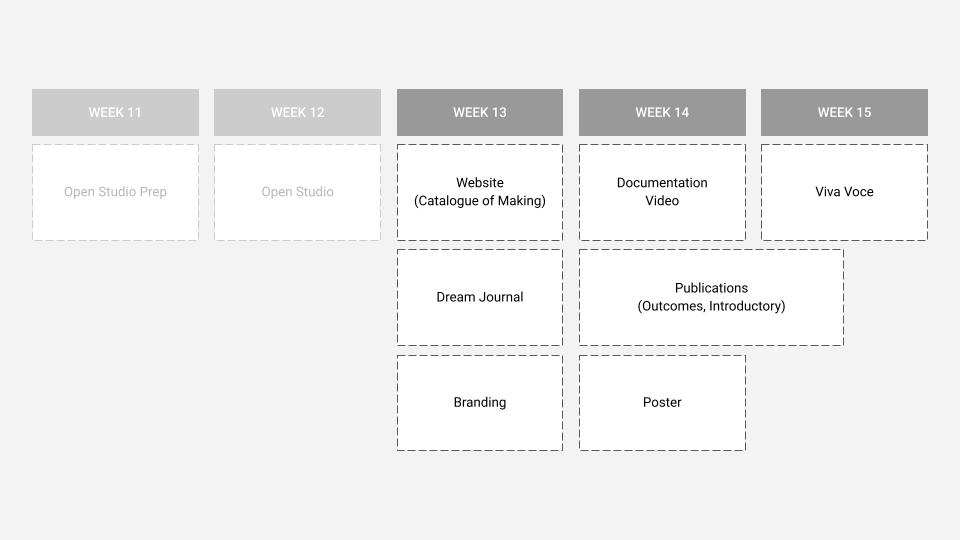 Following Andreas' feedback, I've decided to remove the outcome publications (visual booklets) I was developing. They aren't necessary for my setup now, though they could be added after submission. For the viva voce and LASALLE show, displaying the work as laid-out acrylics is better. One introductory publication is sufficient to engage viewers.