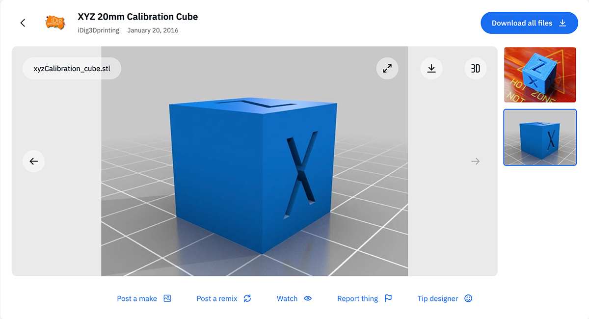 Calibration cube in Thingiverse