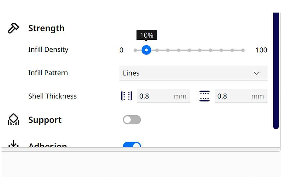 Infill density settings in Cura