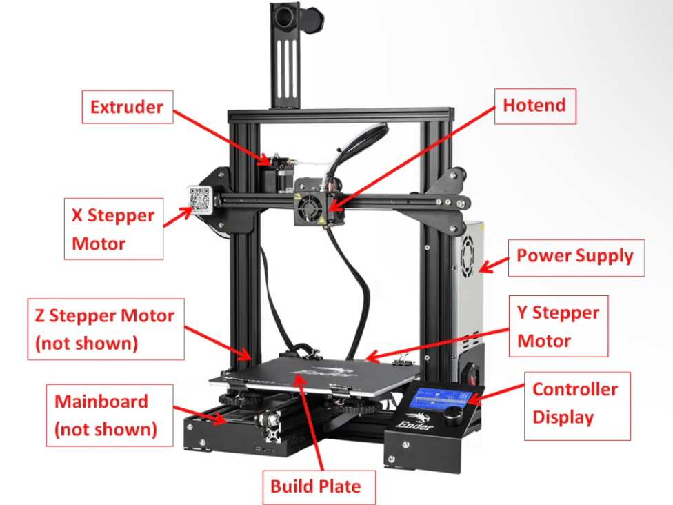 - Print Bed: The platform where the 3D object is formed layer by layer. XYZ Stepper Motors: Motors that control the movement of the hotend in the X, Y, and Z directions to shape the printed object.