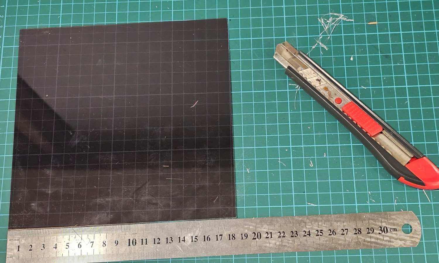 I originally planned to make the hologram box out of 5mm black foam board, but I was worried it wouldn't be sturdy enough. I discovered that 2mm A5 MDF boards were just the right size, so I used them for the base and sides. The back panel was slightly larger and wouldn't have to support much weight, so I used foam board for that.